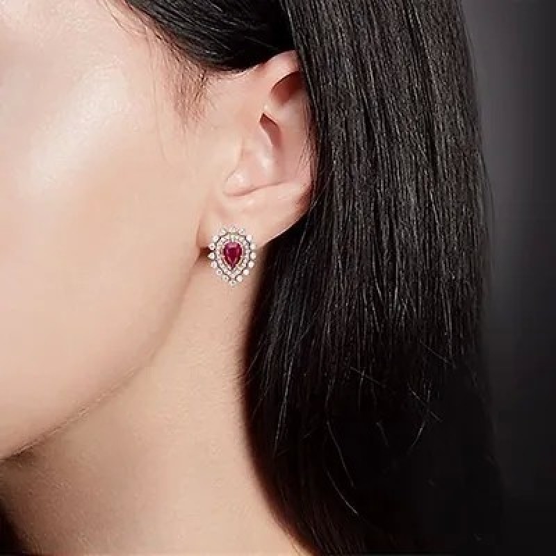 PLATINA Серьги с английским замком из красного золота 585 пробы c рубином и бриллиантами