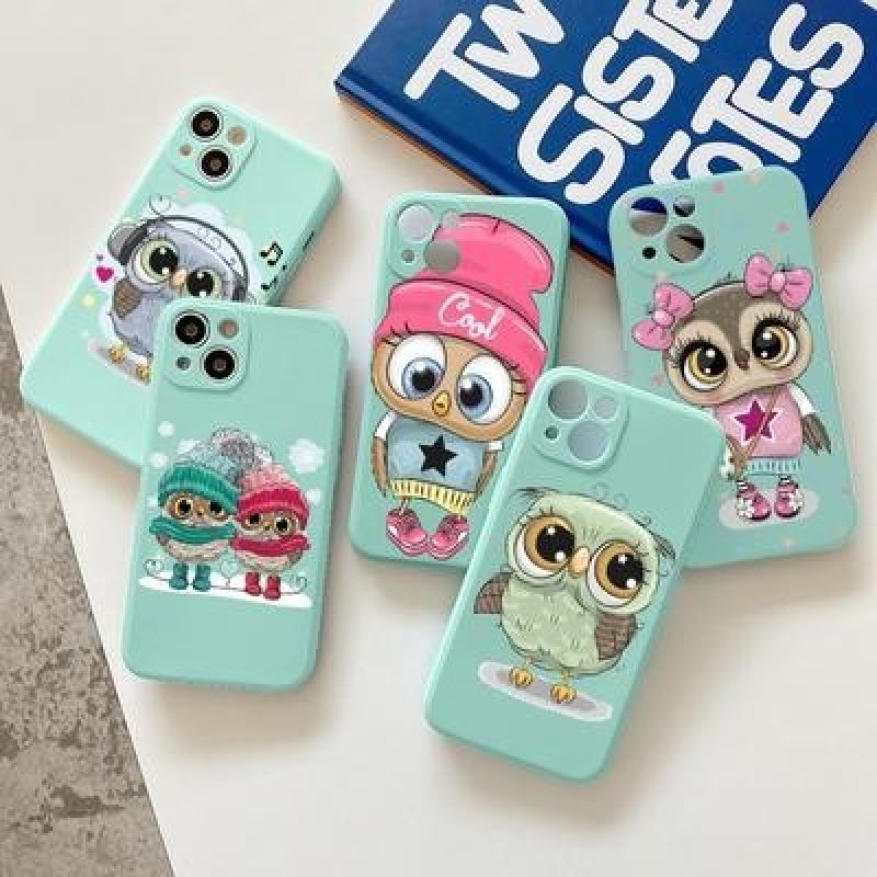 Сова Светлый голубой мягкий чехол для iPhone 12 13 11 Pro Max SE X Samsung A52 A32 A50 A53 A12 A13 A
